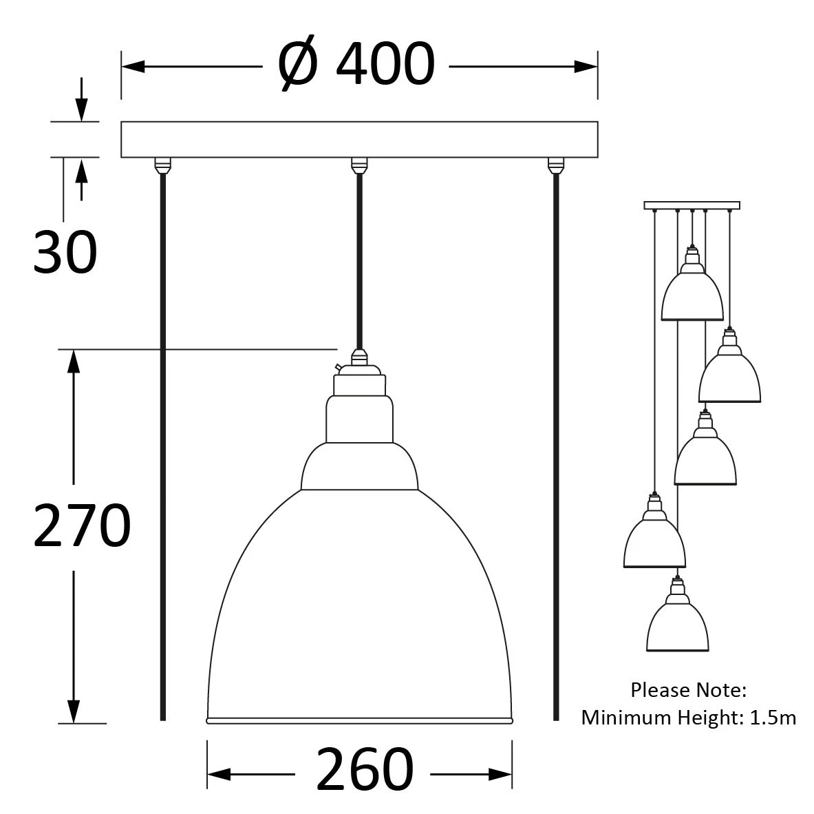 - Overall height (from top of ceiling rose to bottom of lowest pendant) 1.3m as standard.