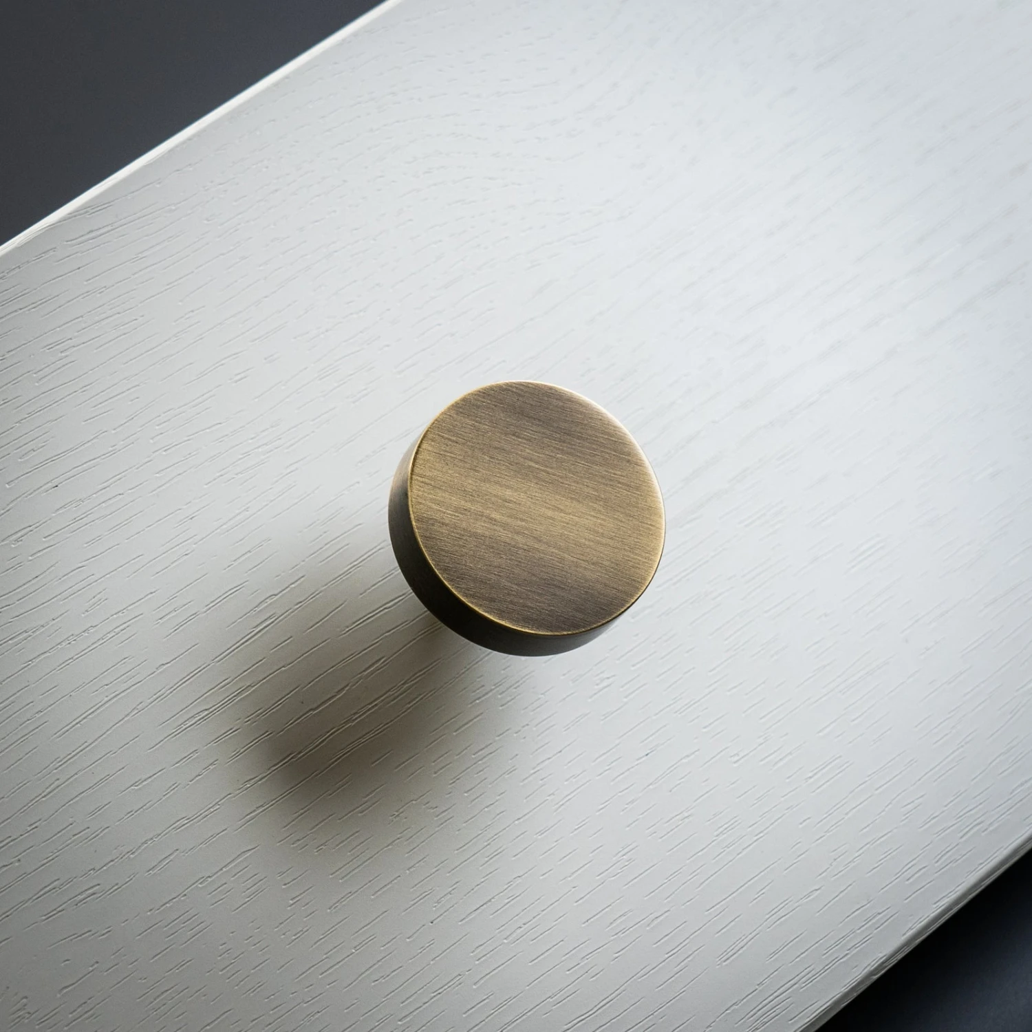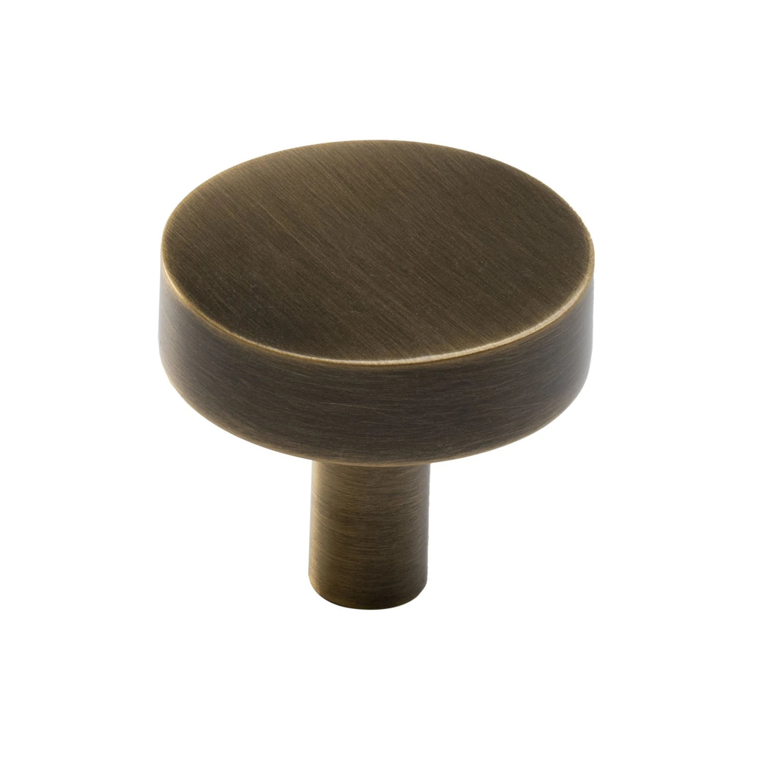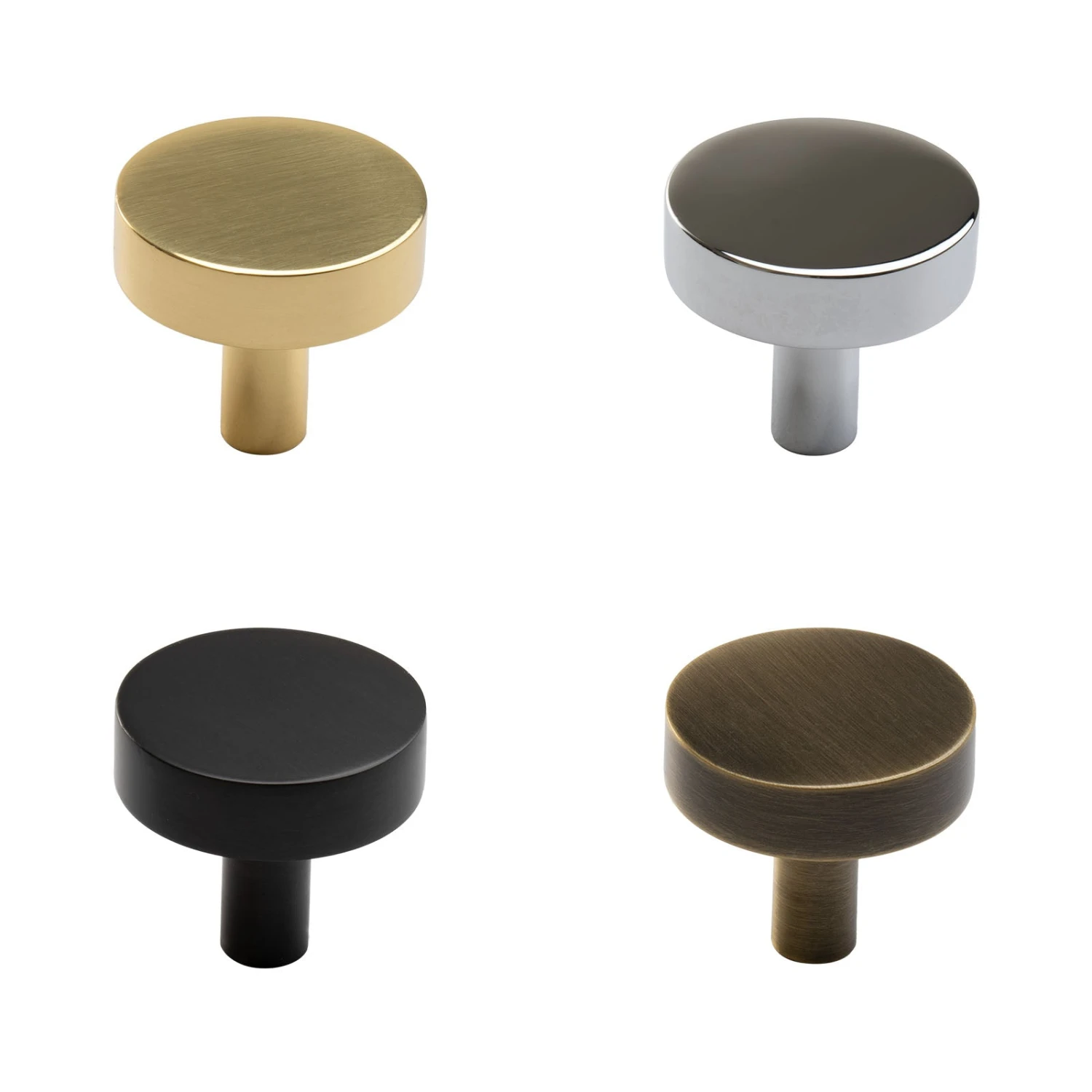 Disc Cabinet Knobs are perfect for kitchen cupboards and drawers. A simple furniture knob made from solid brass and available in six distinctive lacquered finishes. Choose from aged brass, polished brass, polished chrome, matt bronze, satin brass and satin nickel.