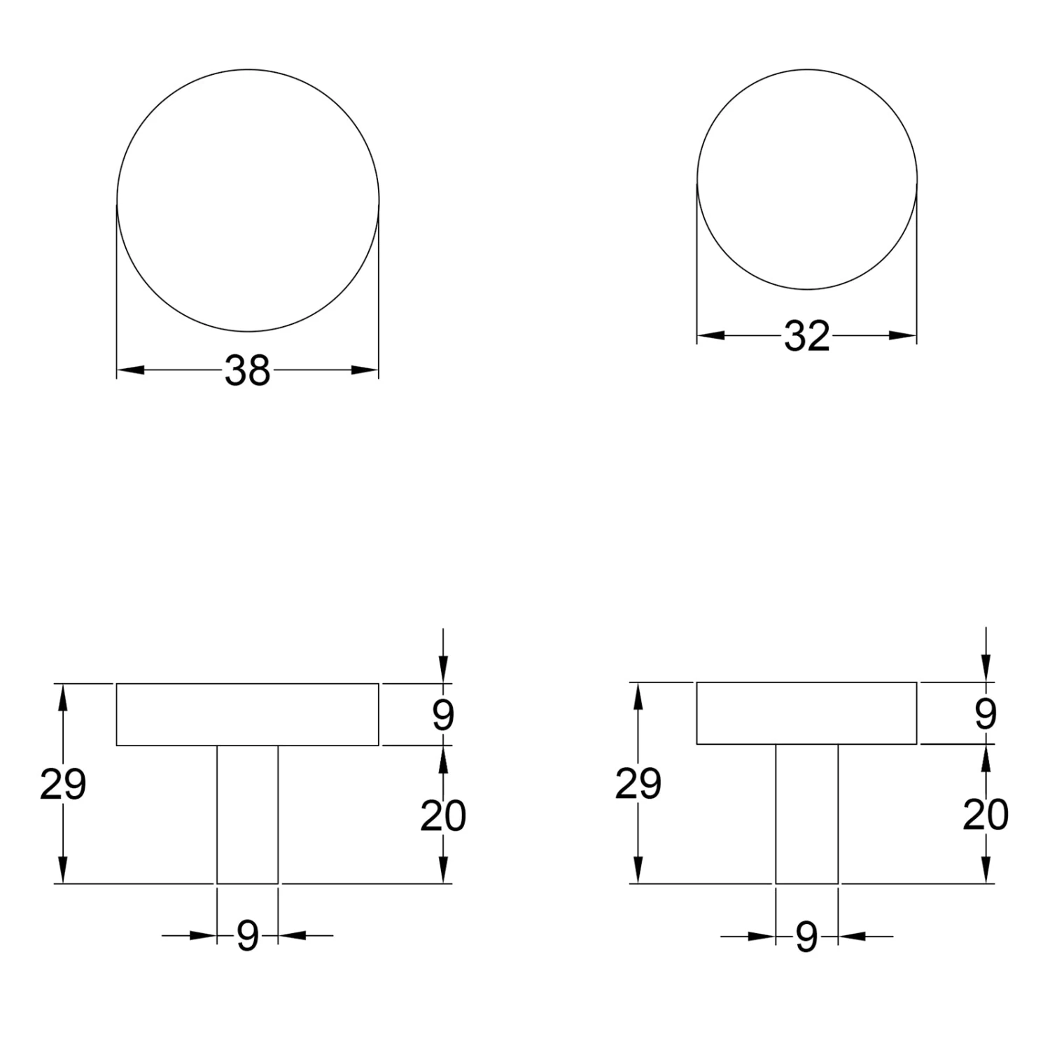 This kitchen knob is available in 32mm and 38mm sizes, suitable for all sizes of cupboard doors and drawers. See also the Disc Knurled Cabinet Knobs for an alternative co-ordinating design.
