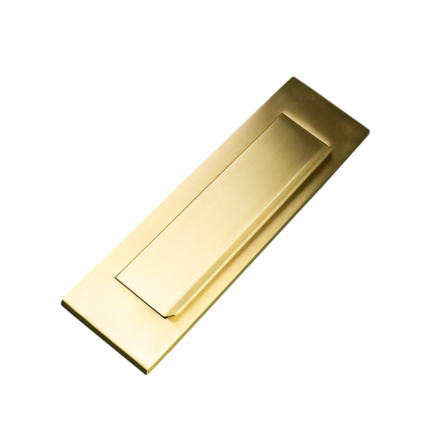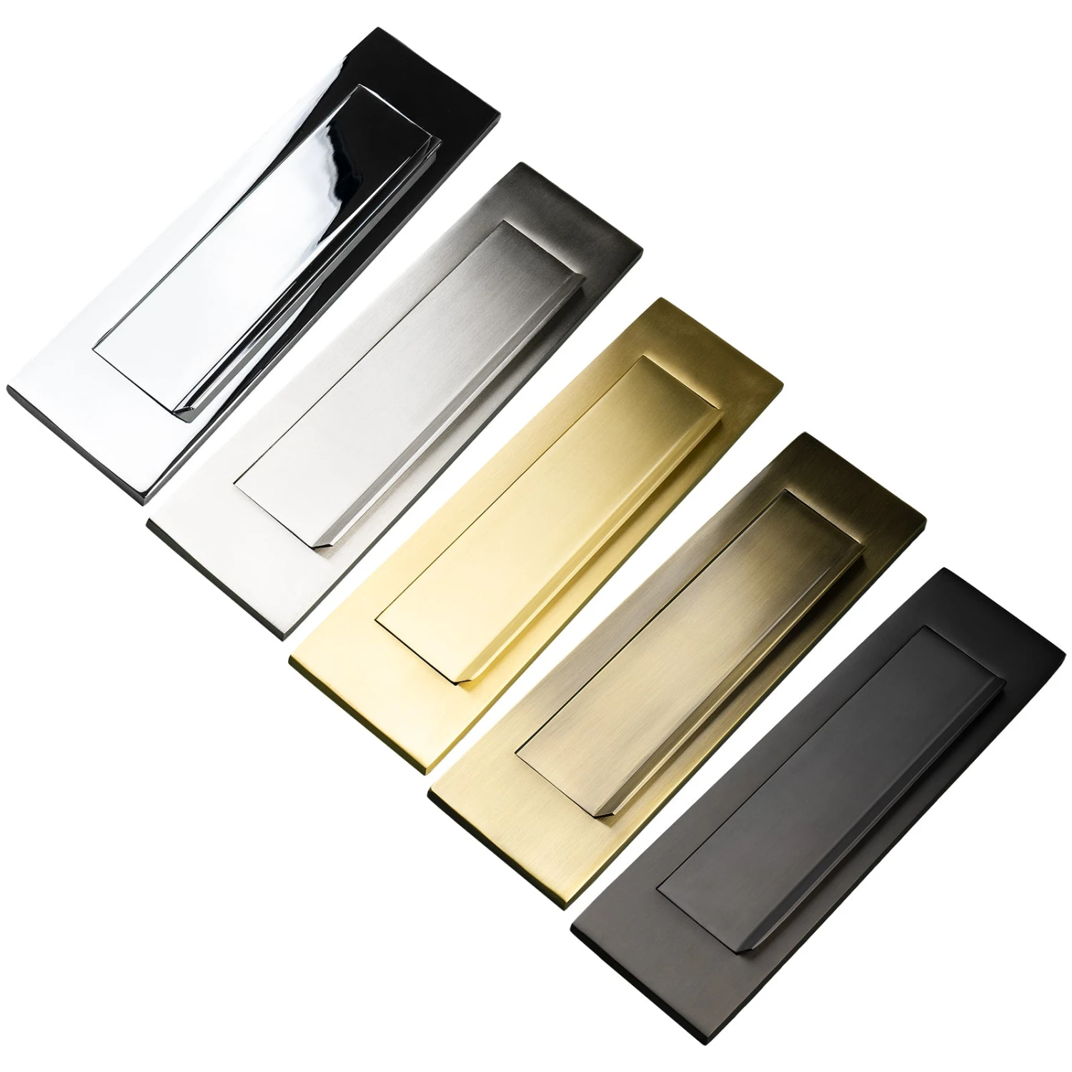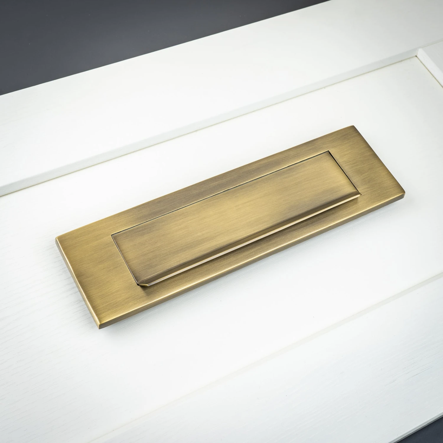 Our gravity flap letter plate is made from quality solid brass and available in five distinct finishes to match our range of brass front door furniture. Choose from aged brass, polished chrome, bronze, satin brass and satin nickel.