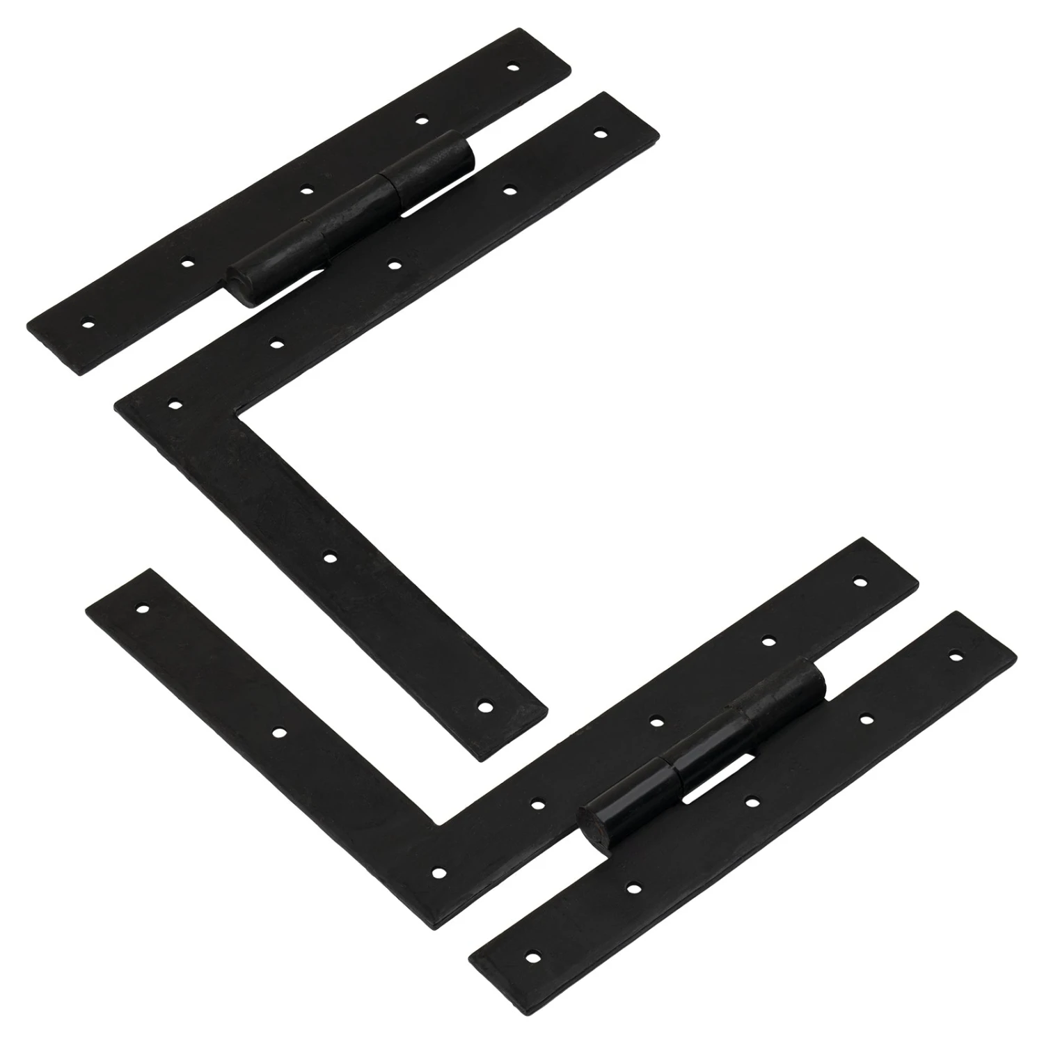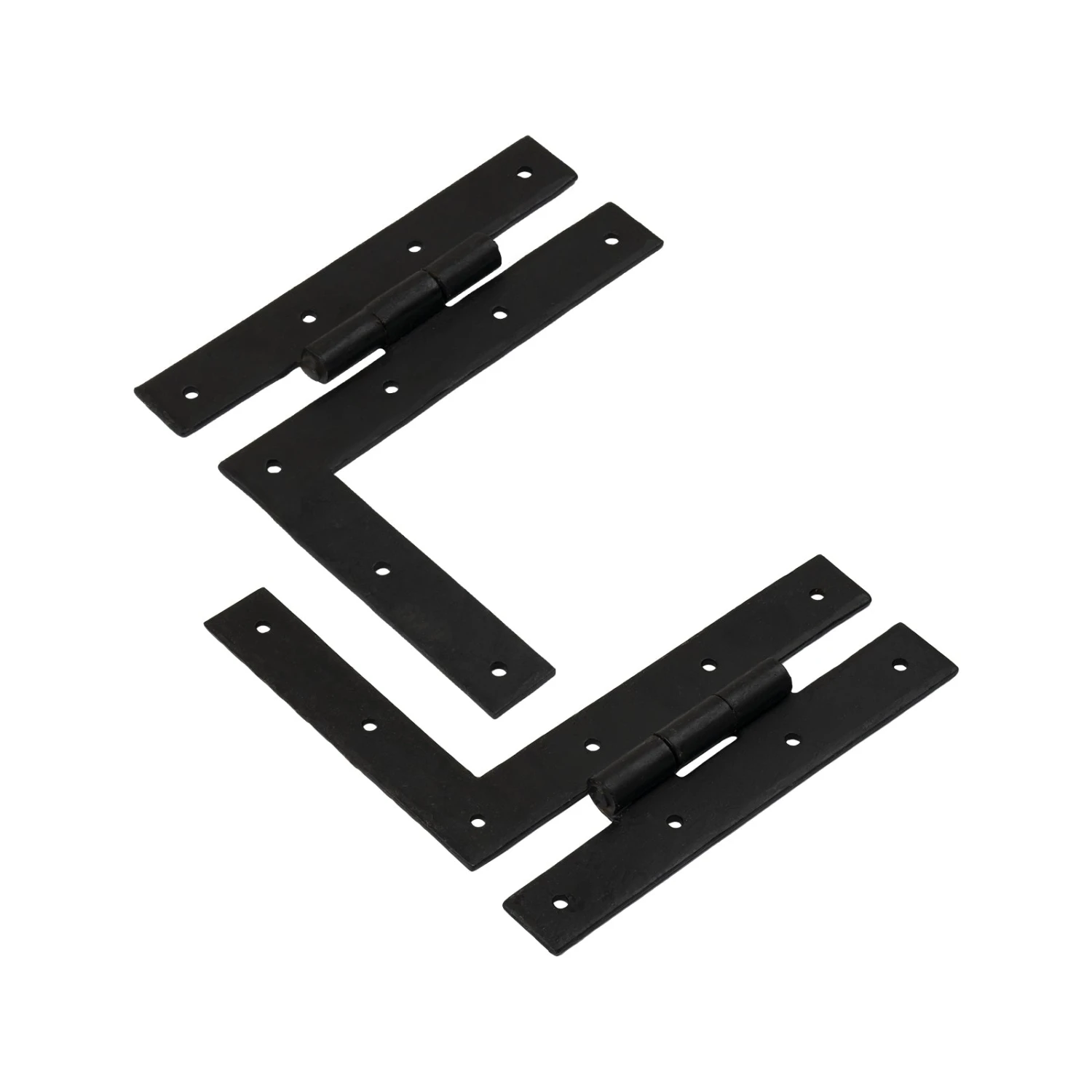 HL hinges are a traditional style of hinge ideal for ledge & brace doors, panel doors and cupboards. The L part of the hinge is designed to run parallel to the top and bottom edges of the door. An authentic period hinge hand forged from mild steel with a classic black beeswax finish. Co-ordinate with our range of Hand Forged door furniture and accessories.