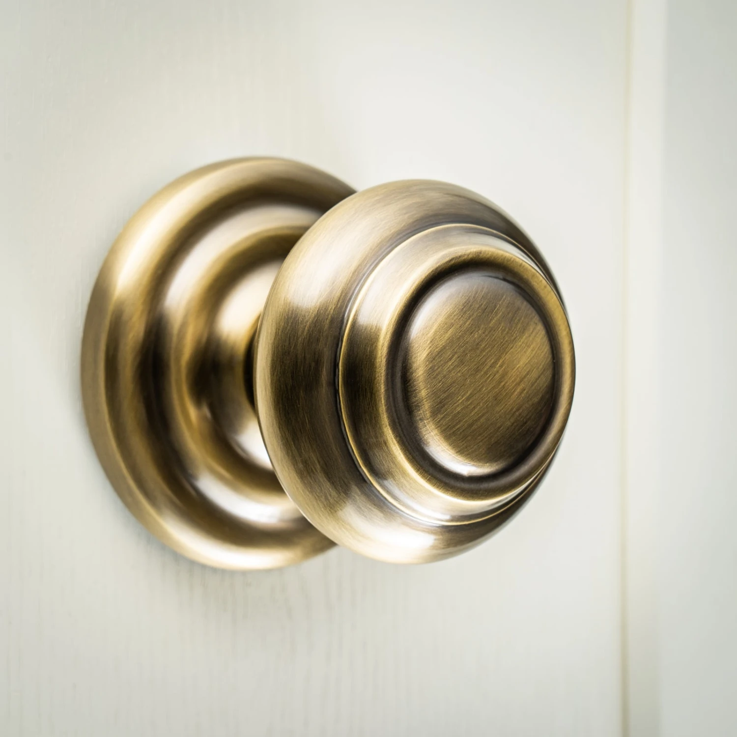 The Ringed Centre Door Knob has a classic stepped edge design. Similar to reeded and beehive knobs, the ringed style of this door pull is inspired by authentic period ironmongery. Made from solid brass the knob is available in a choice of five distinct finishes. For a modern look, choose the satin nickel or chrome centre door knob. The aged brass, satin brass and bronze knobs are ideal for period properties.